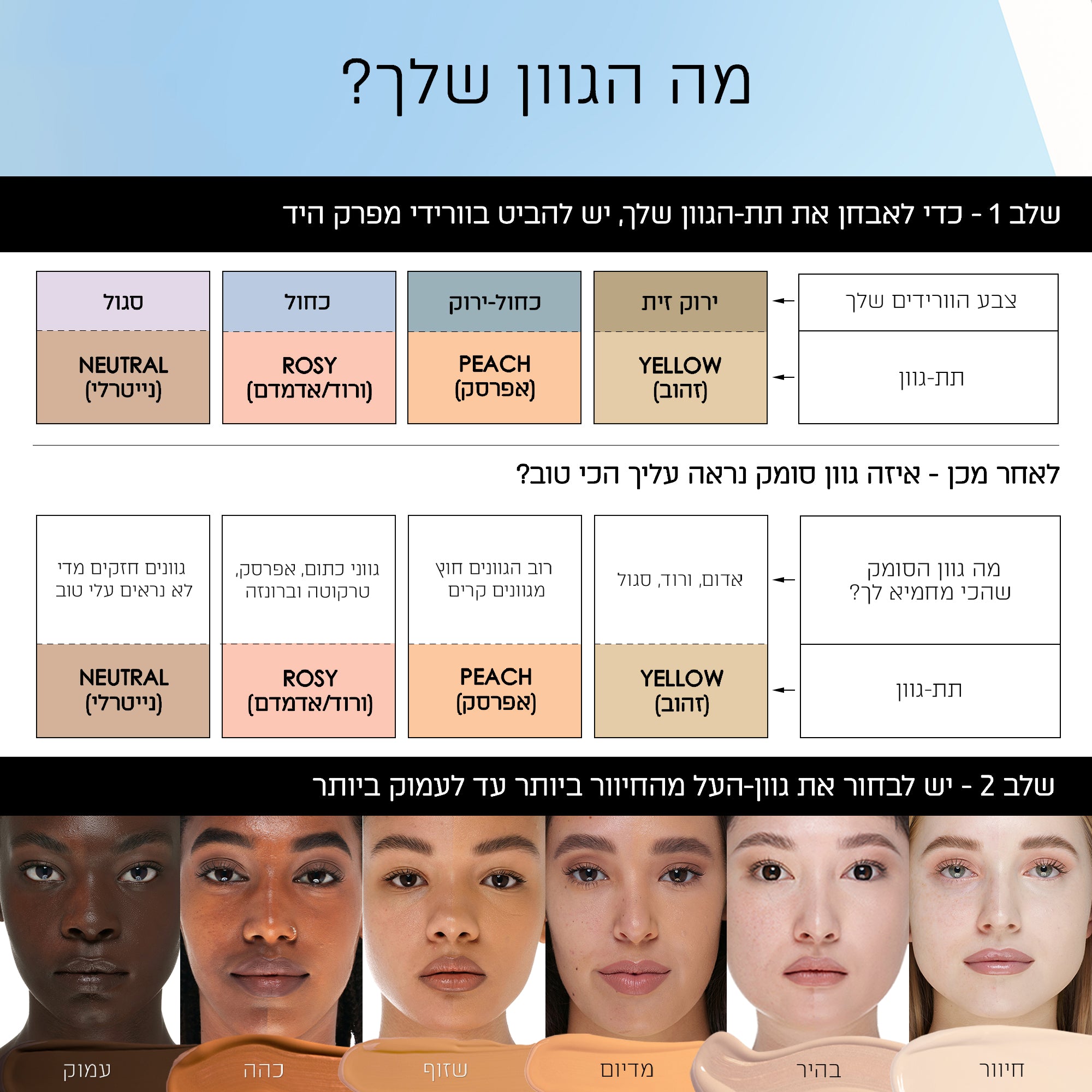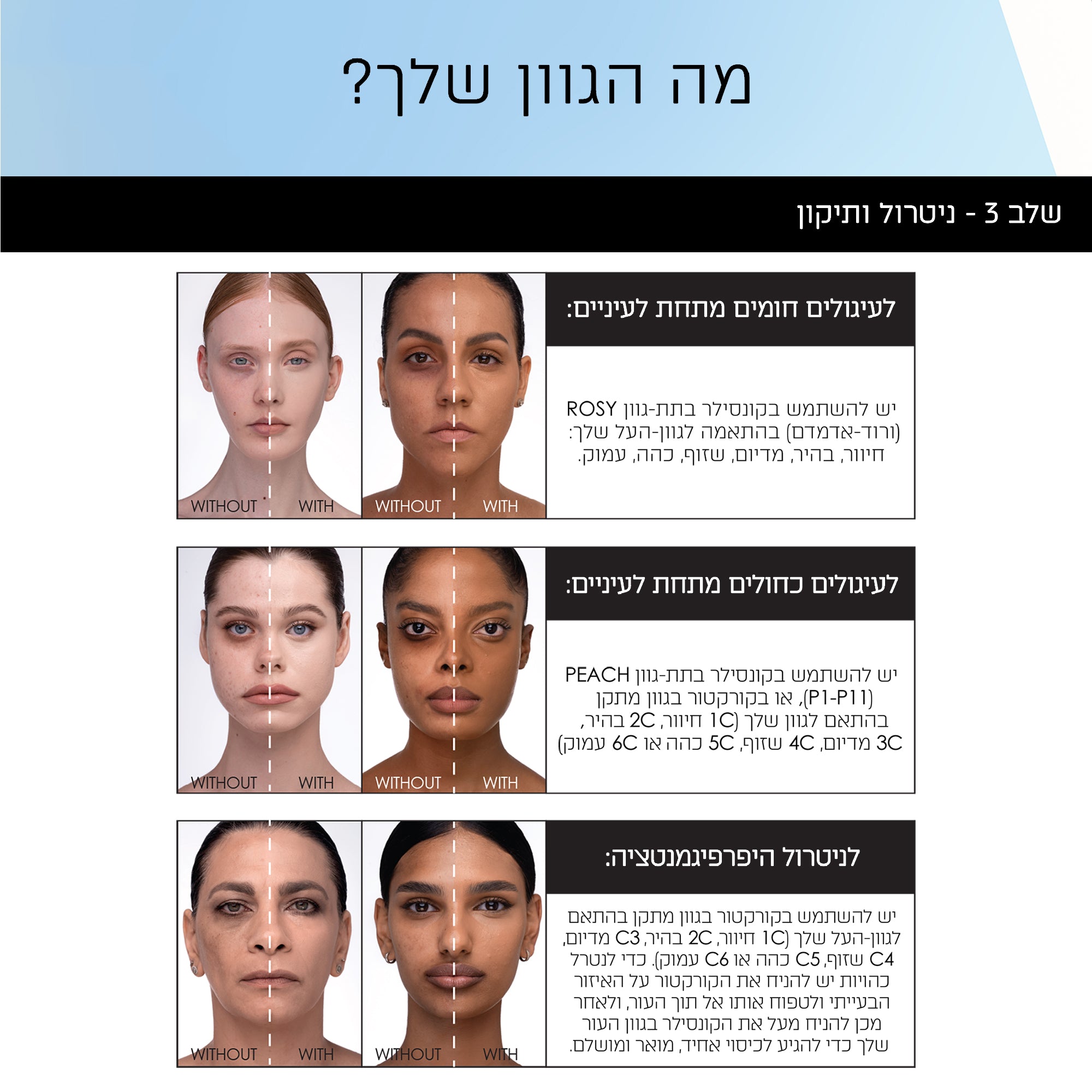 נטאשה דנונה מציגה את קורקטר HY-GLAM בעל הפורמולה החדשנית שמשנה את כללי המשחק: עשירה ברכיבים פעילים עוצמתיים לשיפור מראה העור באופן מיידי ולאורך זמן, לצד רמת ביצוע מקצועית וגלאם עוצמתי. קורקטר HY-GLAM עמיד לאורך זמן ובעל גימור מאט-זוהר המעניק כיסוי בינוני שנבנה עד מלא. מתקבע על הפנים בצורה חלקה, אחידה ומוארת. עמיד עד 19 שעות ואינו נסדק או מצטבר בקמטוטי העור.