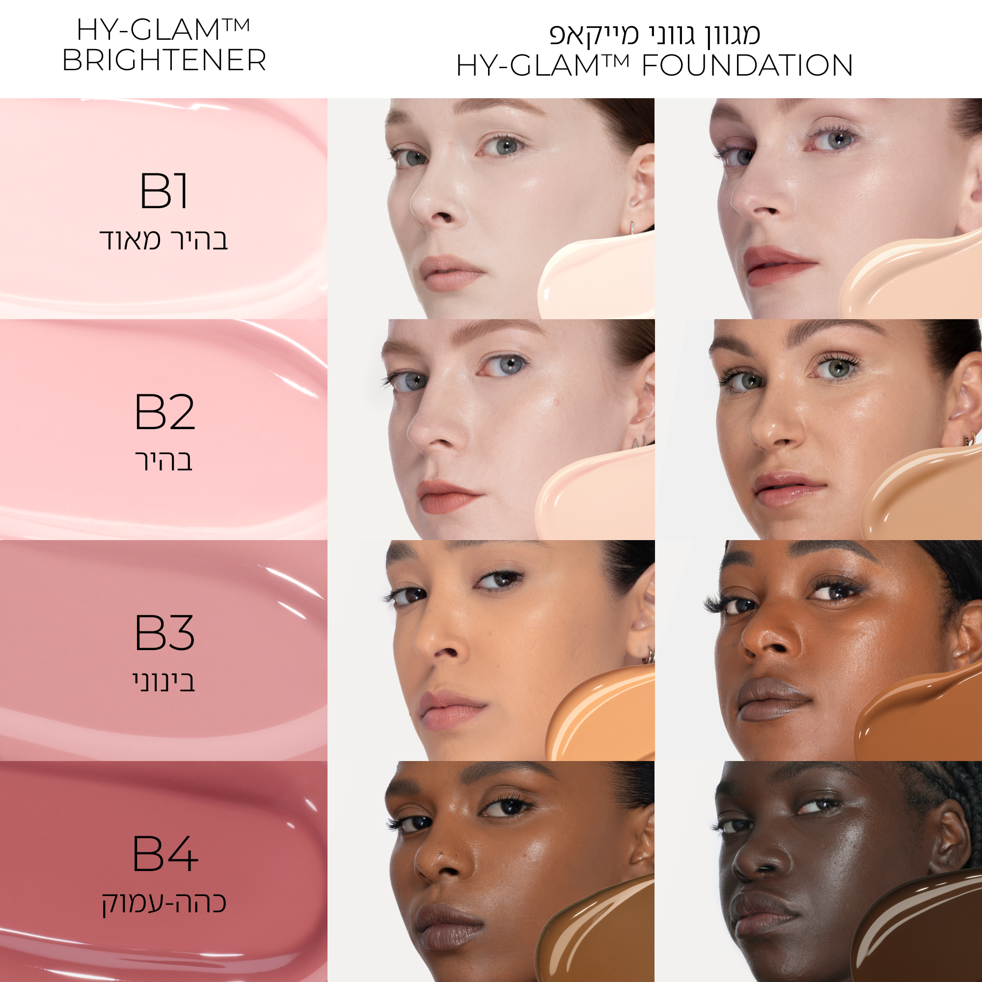 בהשראת קולקציית ה-HY-GLAM הוויראלית שהפכה לבסט-סלר עולמי, נטאשה מציגה את ה-HY-GLAM BRIGHTENER. כהרחבה לסדרת הקונסילרים והקורקטורים האהובה, נטאשה פיתחה את גוני ההארה המושלמים בתתי-גוון ורדרדים, שנועדו להעניק הארה מיידית לאזור שמתחת לעיניים.